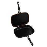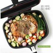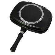 Две полноценные сковороды в одной позволяют жарить, сохраняя кухню и плиту в полной чистоте. Благодаря инновационному антипригарному покрытию, масла для готовки больше не потребуется, а время приготовления сокращается вдвое. Объем сковороды позволяет зажарить целиком цыпленка или 3 большие рыбы.